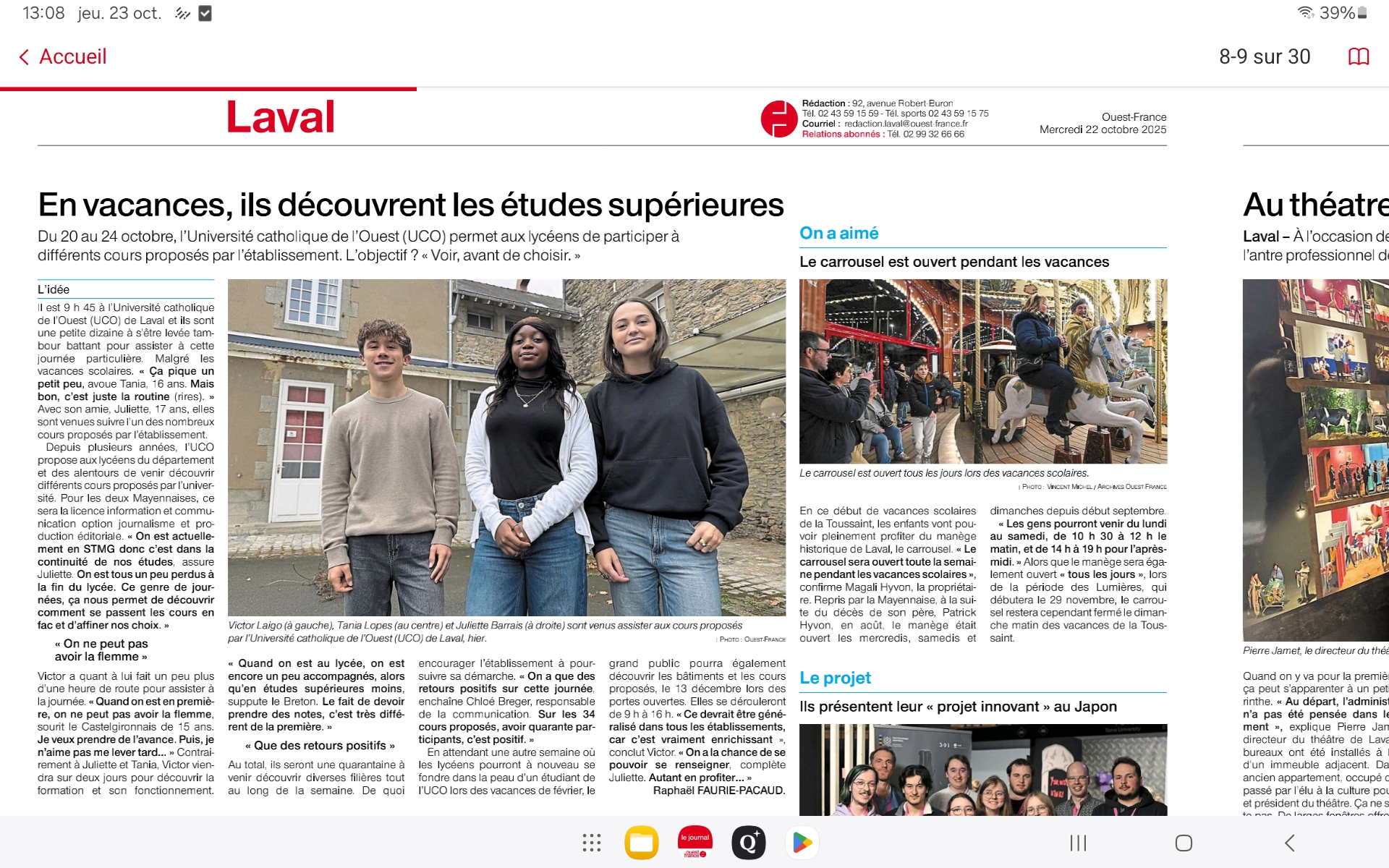 Ouest France | La presse s'affiche sur les murs de l'UCO | Edition du 22 octobre 2022